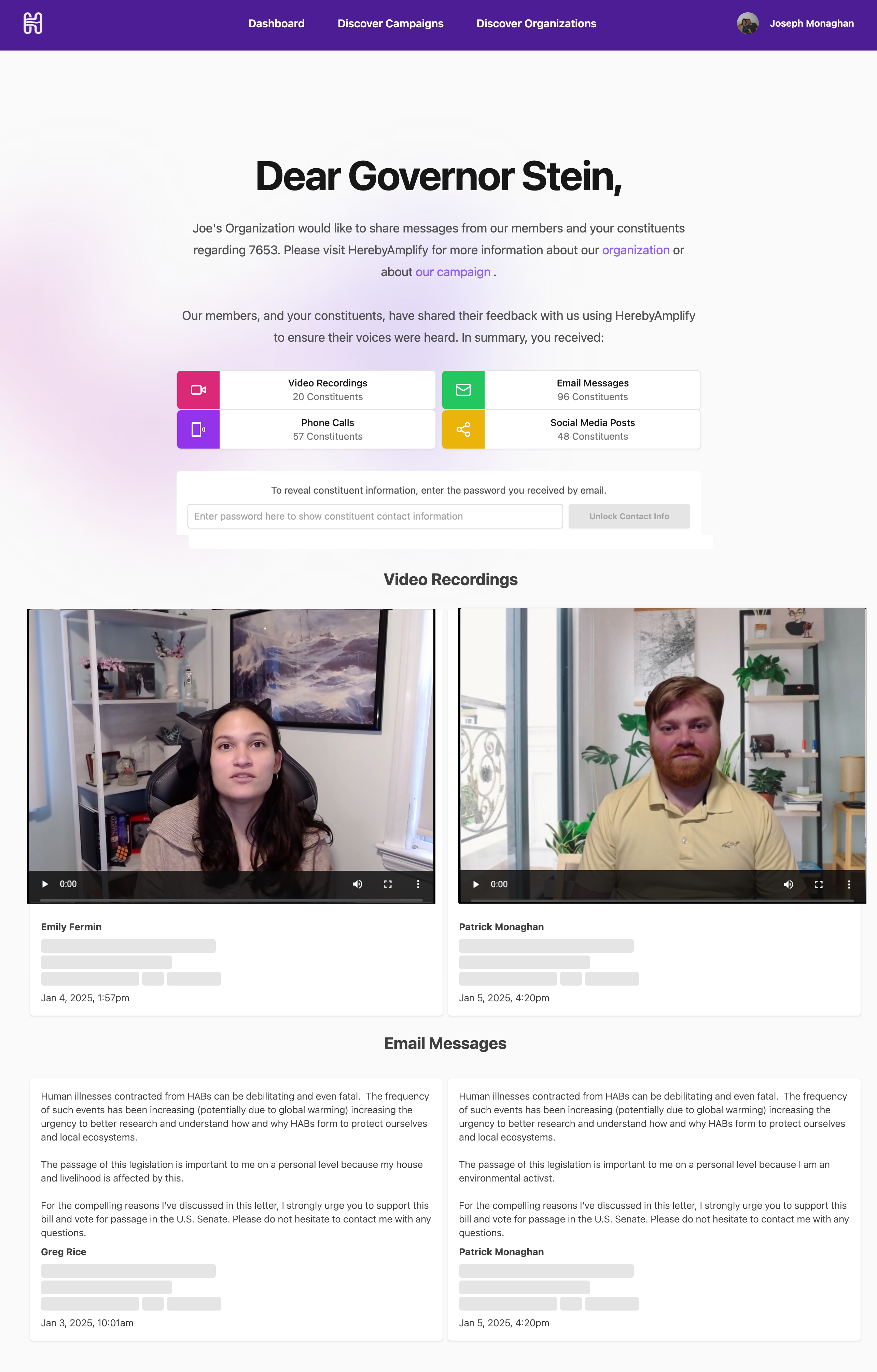 HerebyAmplify is the place for activists and organizations to collaborate and drive elected officials on important issues.